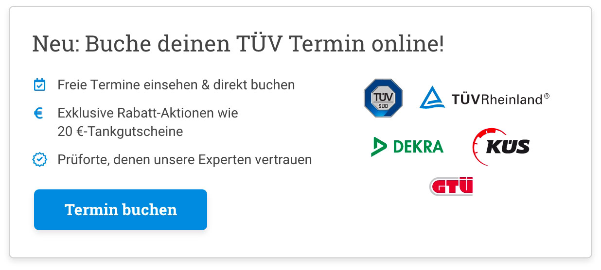 Du kannst dich für die HU-Untersuchung direkt an eine Prüfstelle der folgenden Organisationen wenden: TÜV Gesellschaften, DEKRA, KÜS und GTÜ. Allerdings solltest du davon ausgehen, dass hier etwas länger auf einen Termin wartest. Als Alternative besteht die Option, dich für die HU/AU an eine unserer zertifizierten Partnerwerkstätten zu wenden.